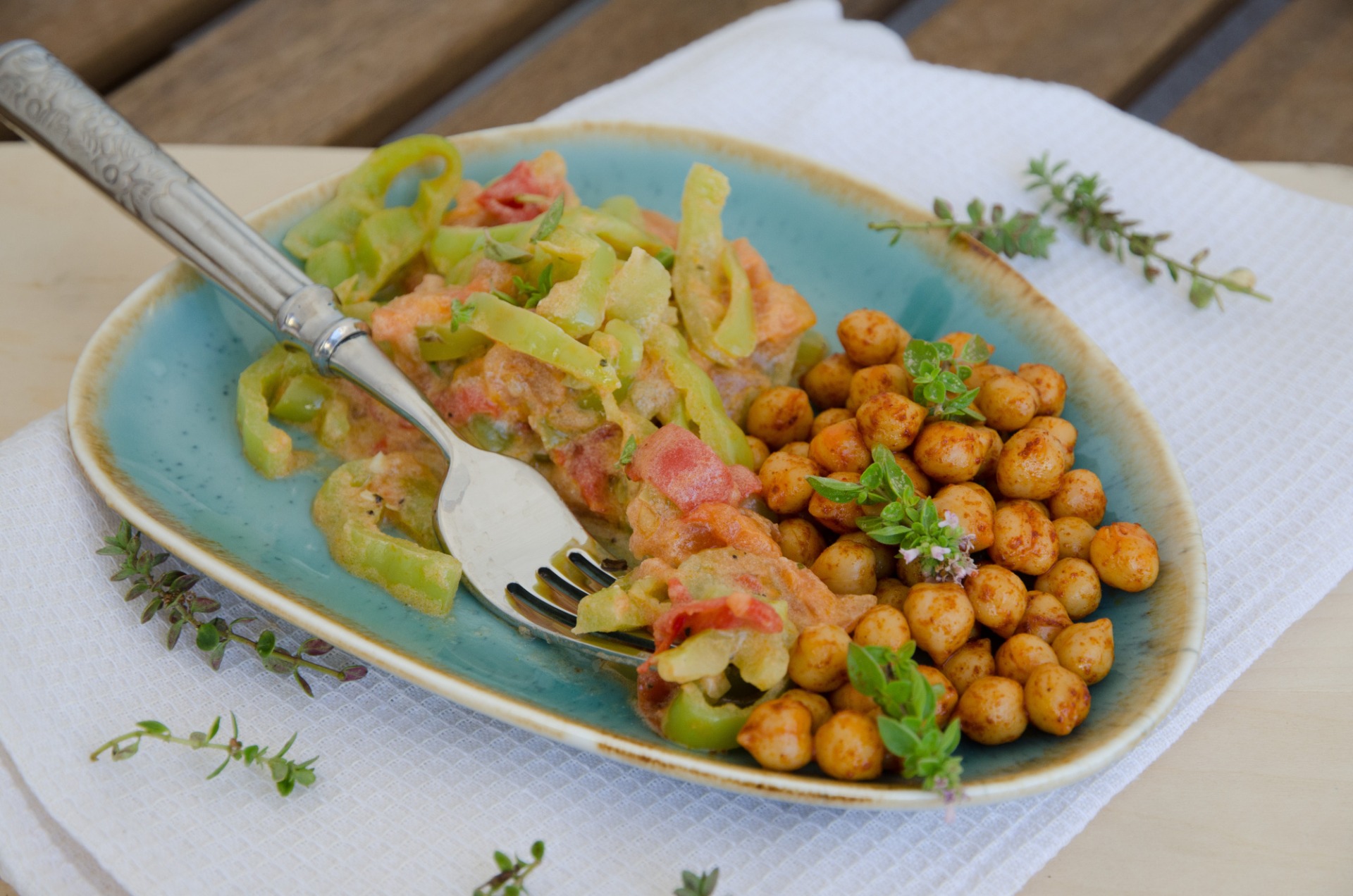 Toto je taká rýchlovka. Ale zasýti a je veľmi chutná. Cícer je skvelá príloha aj napríklad k takejto zeleninke na štýl leča. Orechový olej ešte zvýrazní orieškovú chuť cíceru.